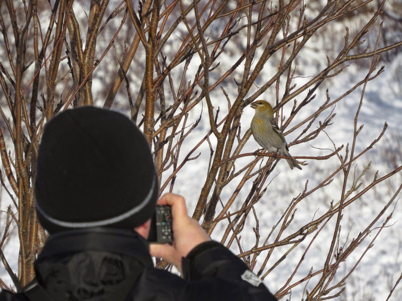 It continues to be a great fall for finches on the Avalon - Evening Grosbeaks and both crossbill species are showing up all over, and Pine Grosbeaks are seeking out the few remaining dogberries in town:
